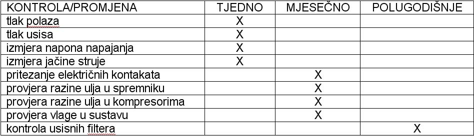 Dolje navedene radnje smiju izvršavati isključivo ovlašteni serviseri, i one se vrše nakon puštanja uređaja u pogon u navedenim vremenskim intervalima.